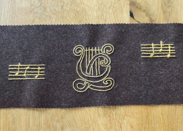 den Initialen von Ulrich entworfen und da er Musik macht, die Lyra mit eingebaut. Das Wappen wurde von Hand gestickt.
